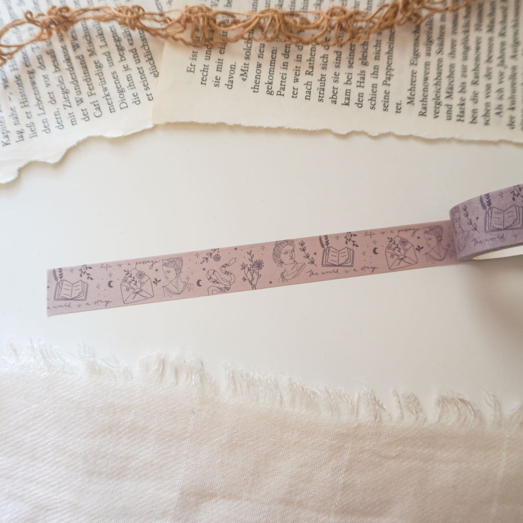 This washi tape is inspired by our love for literary classics featuring drawings of books, letters and Greek statues, designed and hand drawn by Note & Wish