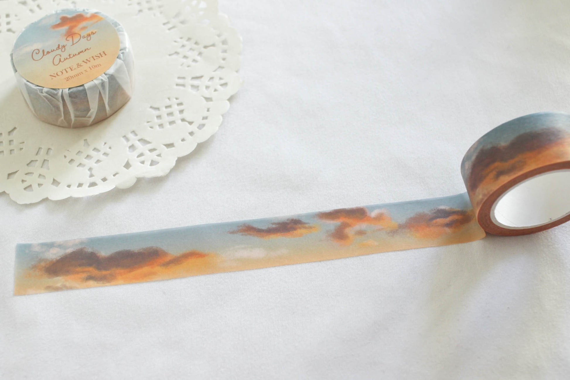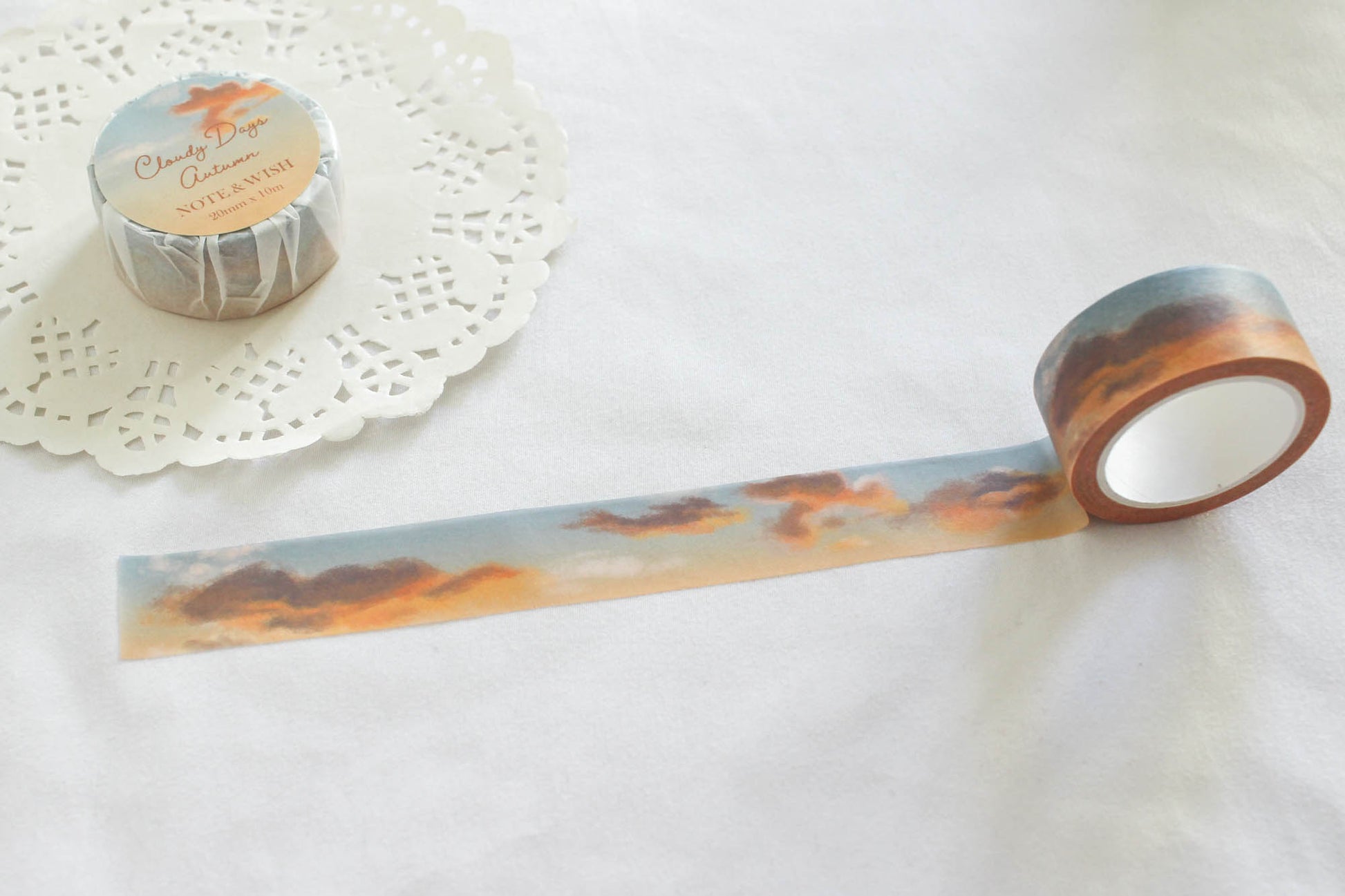 This washi tape is part of our 5th Anniversary Cloudy Days Collection featuring beautiful soft sky-scapes drawn digitally by Rebecca using Procreate, as shown by the last photo. Each washi tape represents one season. This collection is inspired by our very first washi tape collection also named 'Cloudy Days'.