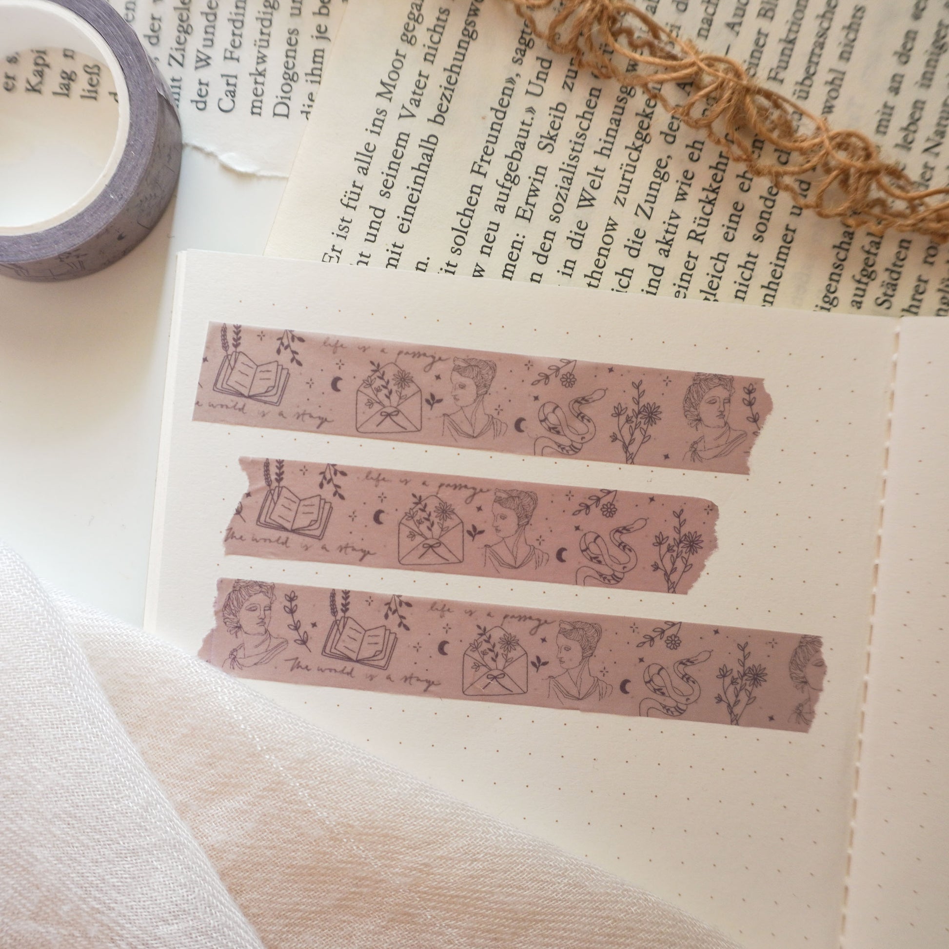 This washi tape is inspired by our love for literary classics featuring drawings of books, letters and Greek statues, designed and hand drawn by Note & Wish