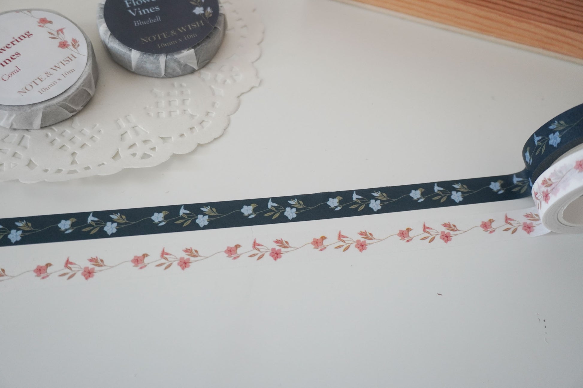 Flowering Vines - Bluebell & Coral Washi Tape Set, Note & Wish Washi