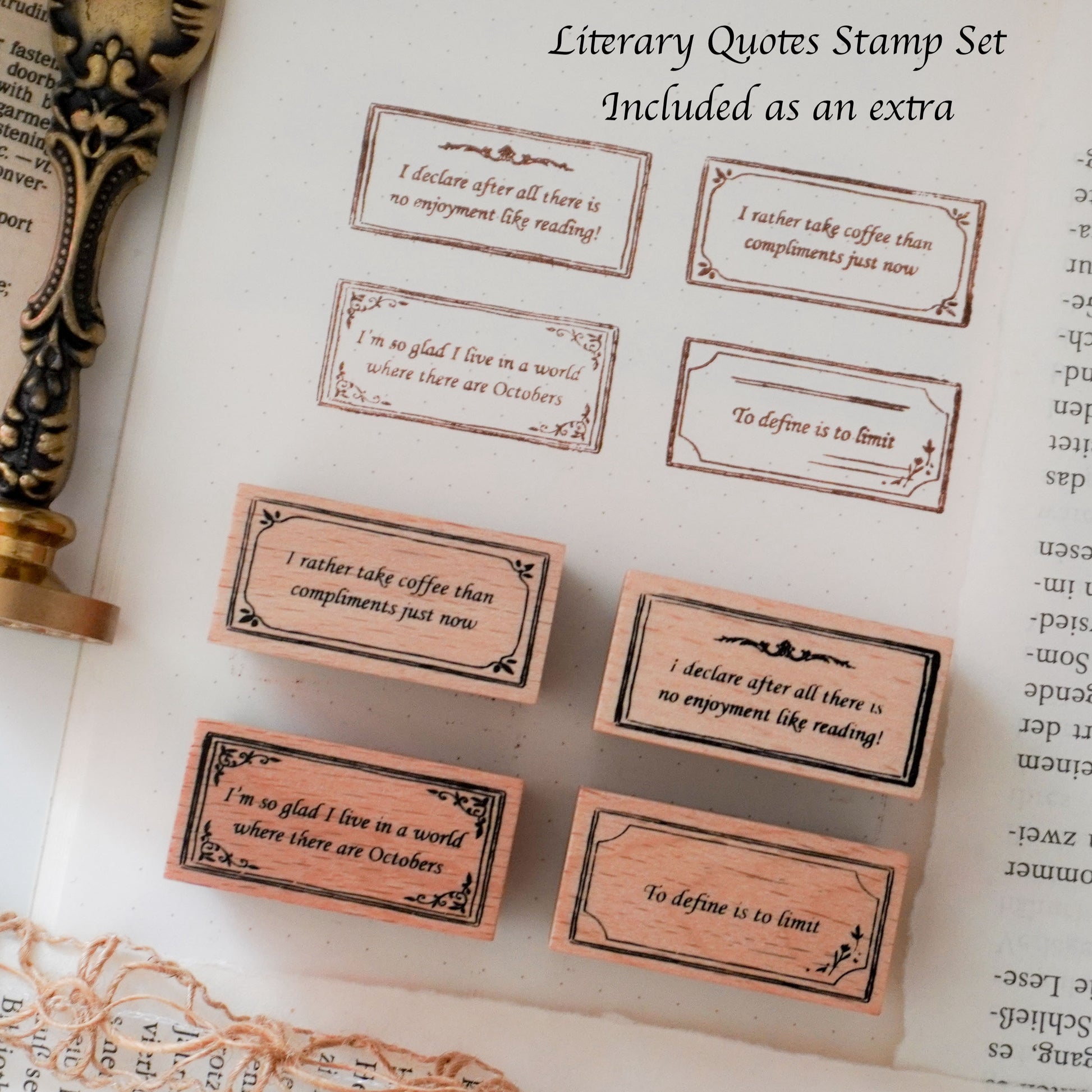 As an extra add on, you can also upgrade your stationery box to include our new Literary Quotes Rubber Stamp Set. Each stamp is 20mm x 40mm and include the following quotes: